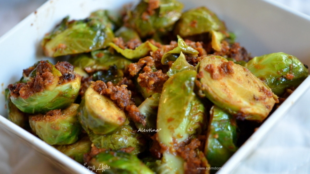 Брюссельская капуста с песто из вяленых томатов