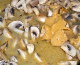 Влейте вино и бульон (овощной, мясной или куриный). Если бульона нет, то можно влить обычную воду. Добавьте пару ложек не очень острой горчицы. Доведите до кипения.