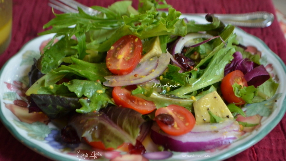 Добавить сушеную клюкву. Сбрызнуть заправкой и подаем к столу.