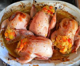 Запекать перепёлок 20-25 минут при 180 г, периодически поливая фрешем. Внимательно следите, чтобы нежное мясо птичек не пересохло!