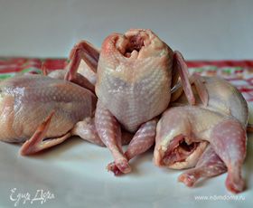 Подготовить тушки четырёх перепёлок (по весу получилось 670г). Промыть и обсушить их бумажными полотенцами.