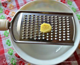 На мелкой тёрке натереть кусочек 1-1,5 см корня имбиря.
