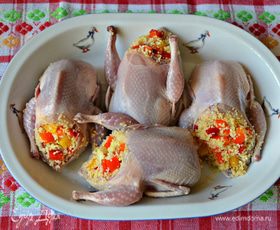 Аккуратно наполнить начинкой каждую тушку перепелов.