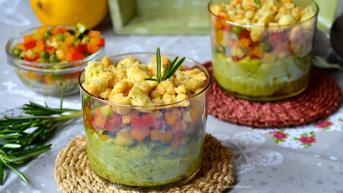 30Ирина, я с отчётом! Я его приготовила! Замечательная закуска. Свежая, легкая, ароматная. Крошка - вообще вне конкуренции. Еще когда готовилась в духовке, заявила о себе во весь голос, т.е. аромат pooh_lol. К сожалению, не нашлось свежего розмарина, заменила сушёным. А горошек с мятой - это очень вкусно. Помнишь, Виктория S готовила на конкурс тарталетки с горошком и мятой? Теперь я попробовала это сочетание и представляю, как вам и им (Викиной семье) было вкусно! Крамбл в неохлажденном (т.е. не после холодильника, а сразу после приготовления) виде понравился больше. Лучше вкусы раскрываются, ну а охлажденный - лучше освежает... pooh_lol Спасибо за рецепт 💐 Фотоотчёт загрузила.