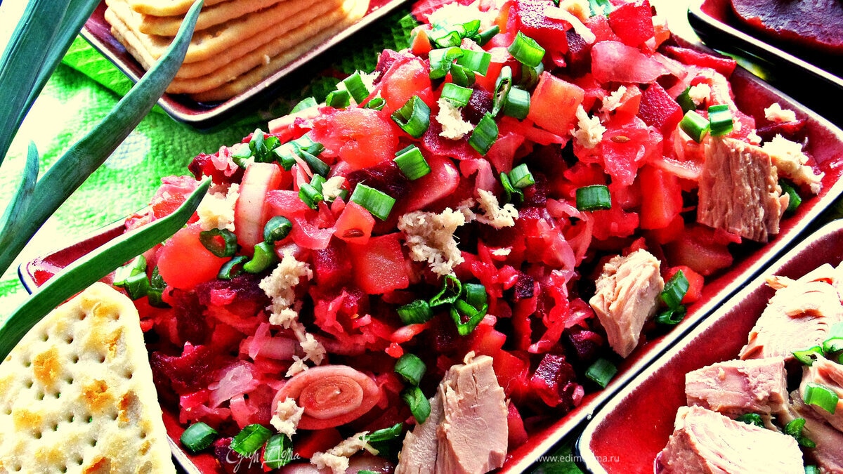 А дальше - как обычно... Выбор дополнительной к винегрету рыбки остановился у меня на тунце (у каждого есть в запасах баночка!) ![]()