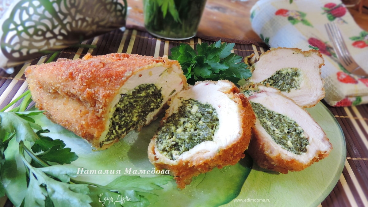 Я представляю вашему вниманию изумительно вкусную и сочную куриную грудку, фаршированную шпинатной начинкой с сыром и творогом.