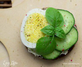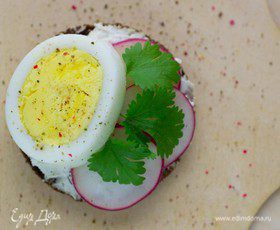 А теперь делаем бутерброды с редисом, яйцом и кинзой.