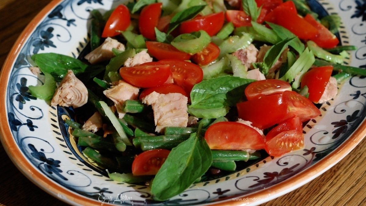 Теплый салат «три фасоли»