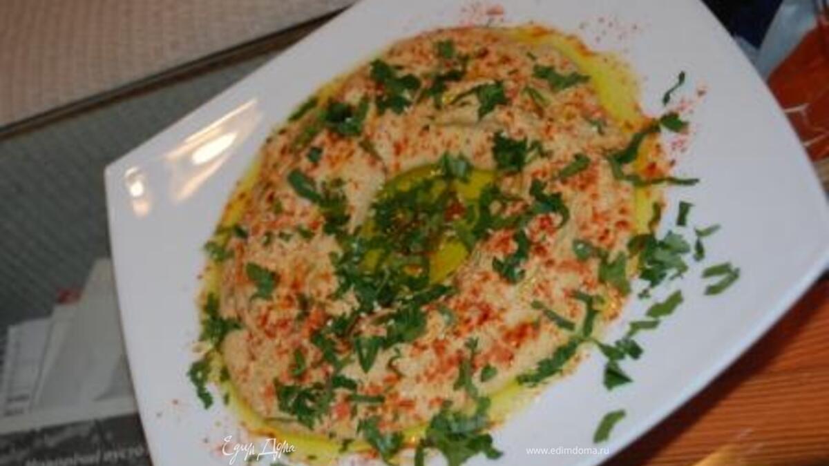 - Шаг 1Нут заливаем водой комнатной температуры и оставляем на ночь. Утром промываем, перекладываем в кастрюлю, заливаем водой, слегка солим, доводим до кипения и варим около 1 1/2 часа на медленном огне – до полного размягчения нута. Отправляем в блендер сваренные бобы и 250 мл получившегося бульона, кунжутную смесь, добавляем чеснок, оливковое масло, лимонный сок и смешиваем до однородной массы, добавив специи. Получившуюся массу выкладываем на тарелку, поливаемоливковым маслом, украшаем мелко нарезанной кинзой, паприкой. Подавать можно горячим или охлажденным с питами, арабской лепешкой или армянским лавашем. Также можно подавать дольки лука, перца и лимона.