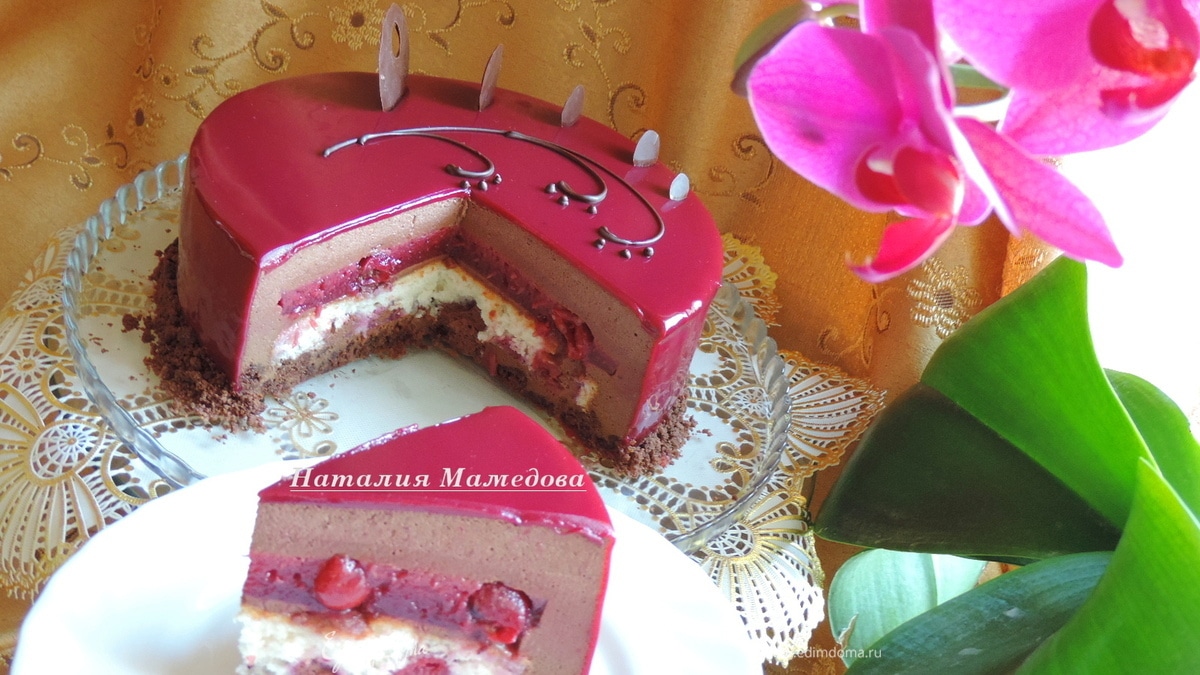 33Наташа, все не было времени отчитаться! Торт получается отличный, в меру сладкий, что мне очень понравилось!))) Всего было достаточно и хватило, а то когда заливала в форму, мне показалось что мусса маловато))) Глазурь делала только на белом шоколаде и с розовым красителем..,а вишневую прослойку на желатине))) все очень вкусно! Украшала на скорую руку.. что придумалось))))) Спасибо тебе за рецепт и хорошее описание)))