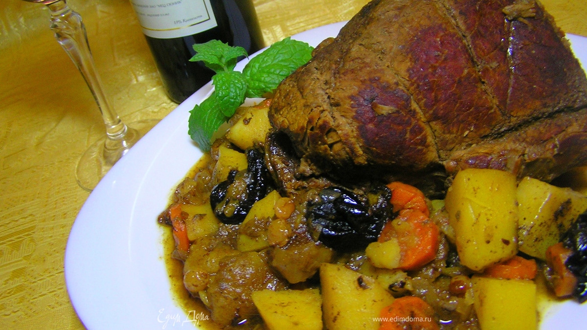 Жаркое из говядины с овощами и сухофруктами