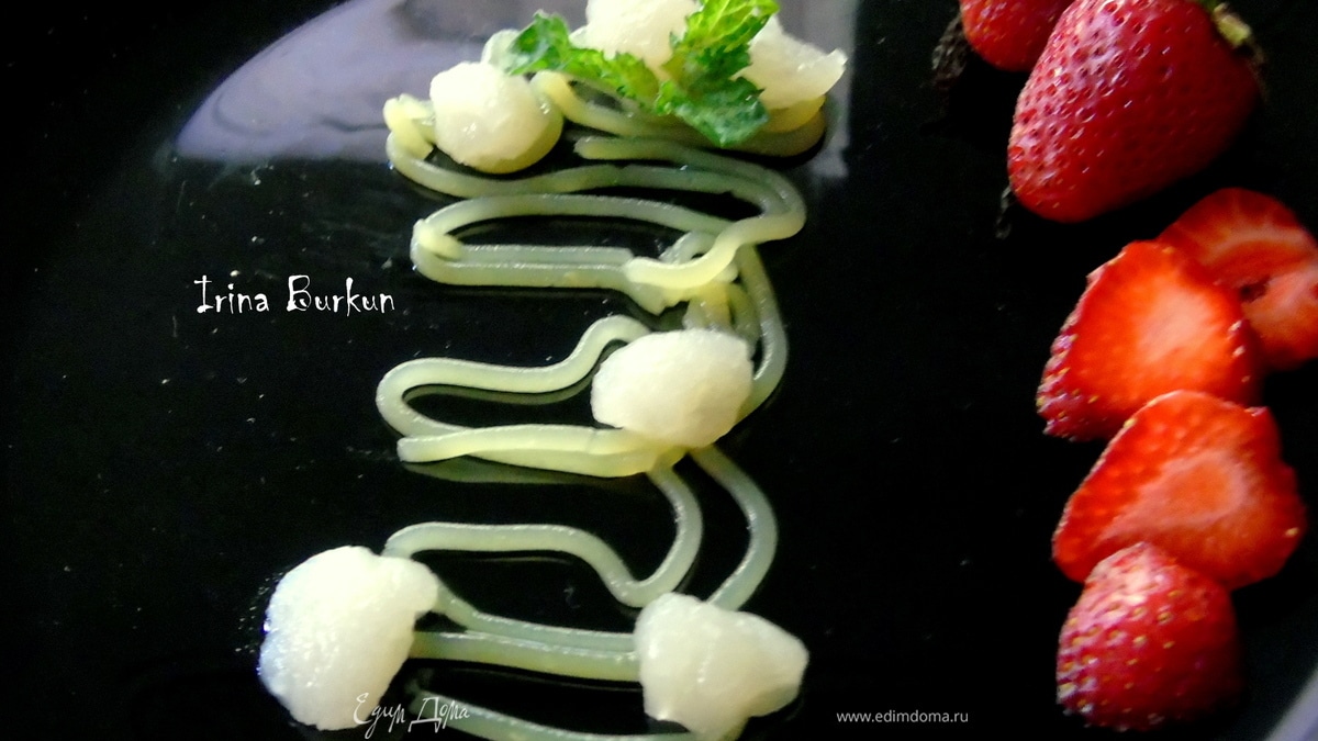 Теперь приступим к спагетти. Нагреем сок с сахаром до 60°С и растворим в нем агар-агар, перемешайте и дождитесь пока смесь немного загустеет. - Шаг 4