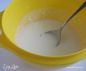 Подогреть молоко до 30 град. В теплое молок добавить сахар, йогурт и яйцо, хорошо размешать.