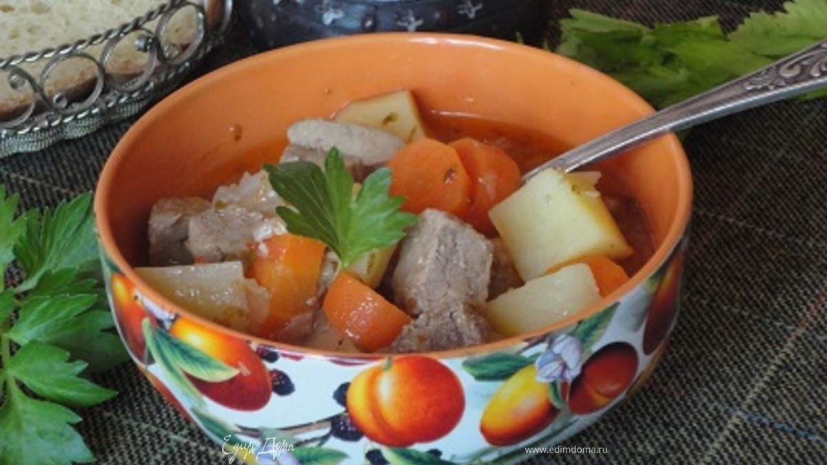 Эстофадо - очень густой суп, который в Мексике подают и как второе блюдо. У меня так и получилось сегодня. Первым блюдом была окрошка. Суп похож на нашу традиционную катрошку с мясом. Правда, тут получается мясо с картошкой. Мне показалось вначале, что простота приготовления (никаких зажарок) не предвещает чего-либо насыщенного по вкусу. К моему счастью, я ошибалась. Получилось очень сытное и ароматное блюдо.