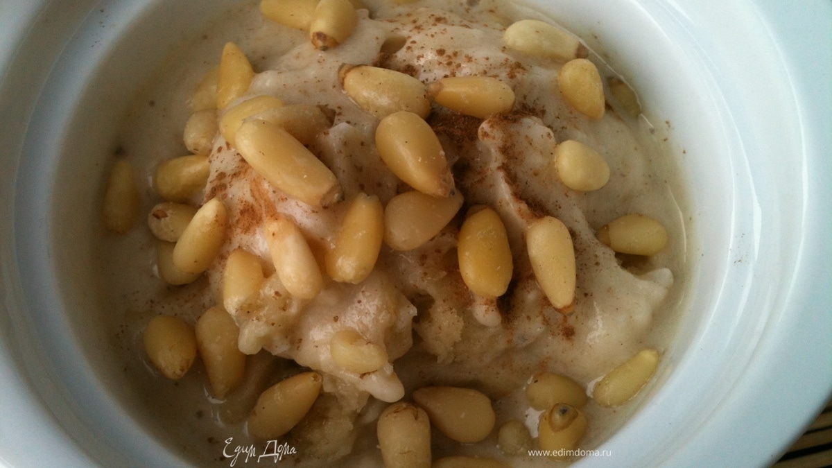 Готовую массу положить в креманку, посыпать орешками и при желании корицей и быстро съесть!