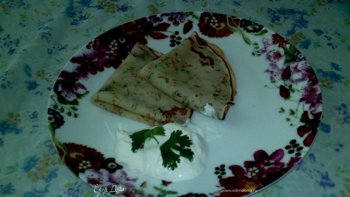 - Шаг 5Итак,наша вкусность готова, выкладываем ее в тарелку в форме треугольника и рядом поливаем сметаной. Приятного аппетита!!!
