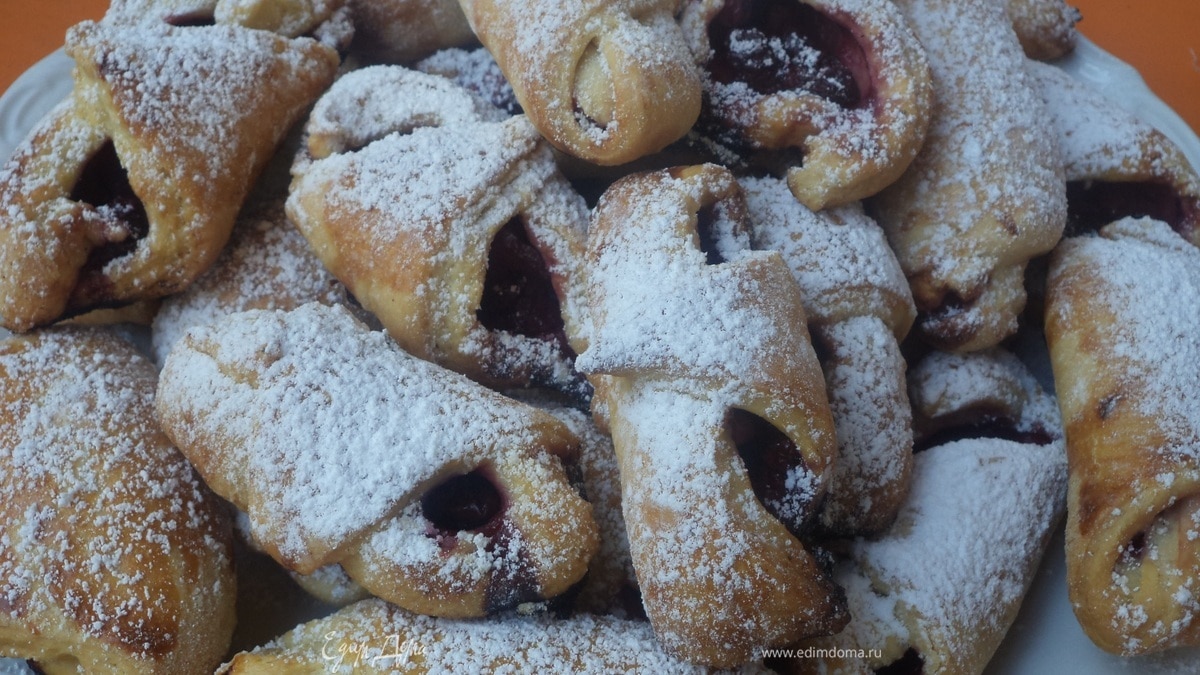 Рогалики из слоёного теста с вишней и смородиной