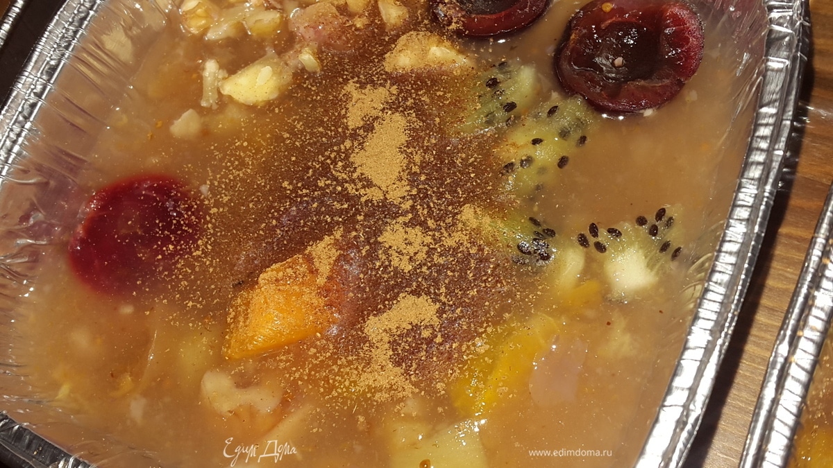 Еще через пять минут отправить в кастрюлю свежие фрукты. Варить пять минут, выключить огонь и дать еще пять минут постоять. - Шаг 5