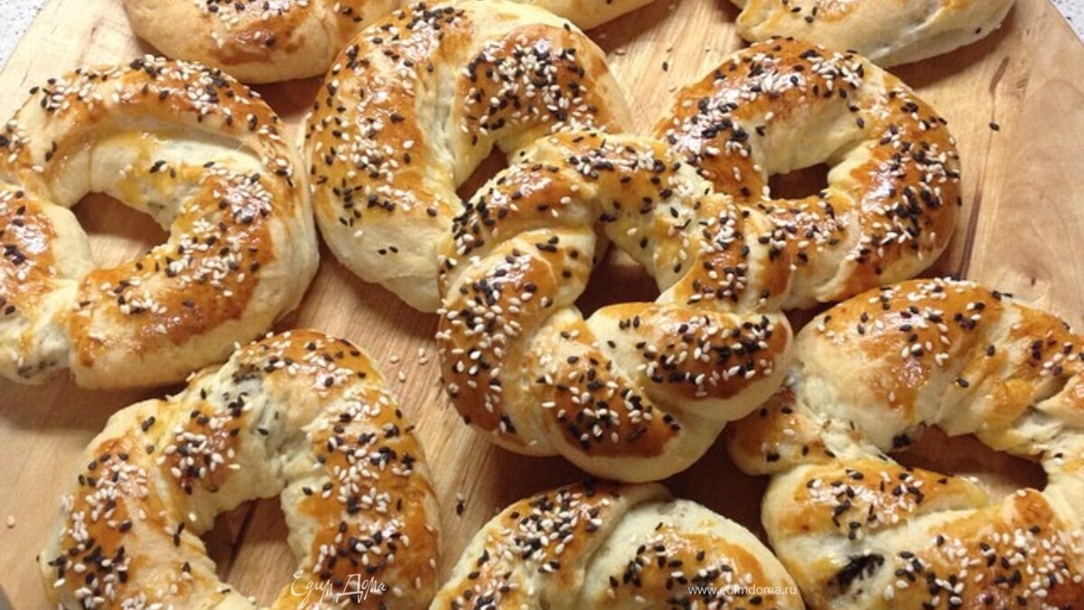 Оставить булочки для расстойки примерно на 15-20 минут. Смазать их желтком, посыпать кунжутом(черным, белым или можно семечками даже). Выпекать в духовке при 180 градусах около 20 минут, пока не зарумянятся. Приятного аппетита! Afiyet olsun!