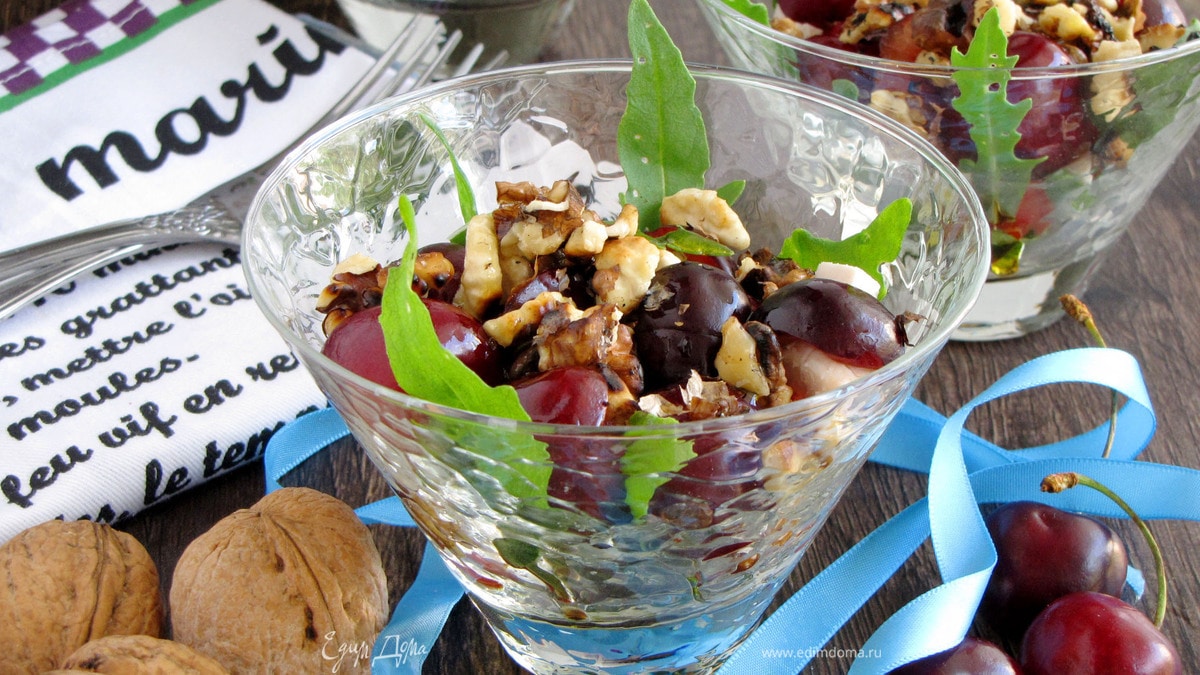 Как лёгкий во всех отношениях салат! Надо попробовать. Как раз черешню купила, надо будет отложить несколько штучек для салата.