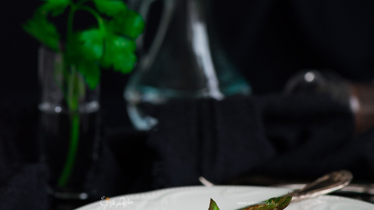 Спаржу лучше всего использовать очень тонкую. Белая так же подойдет.