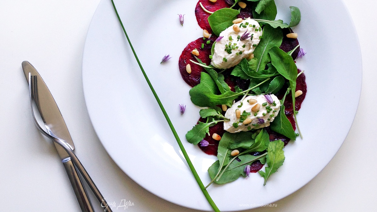 Карпаччо из свеклы с рукколой и кремом из маскарпоне