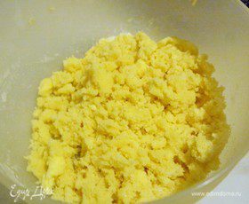 Для посыпки смешиваем муку с сахарным песком и холодным сливочным маслом. Перетираем руками в крошку.