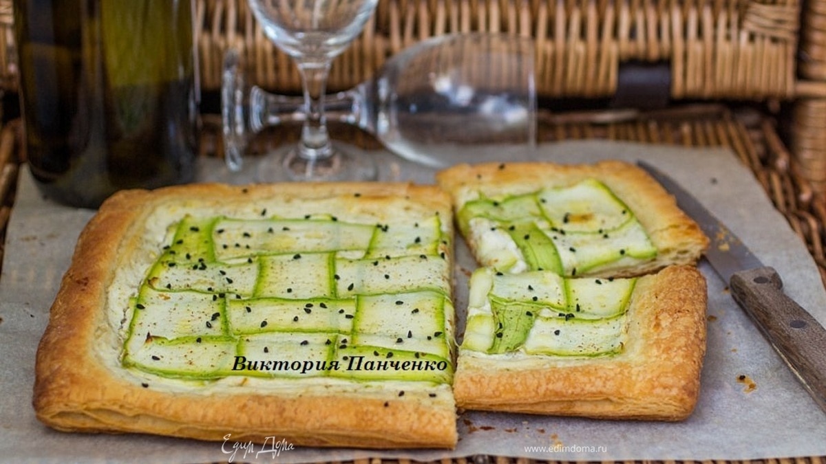 Слоеный пирог с творожным сыром и цукини