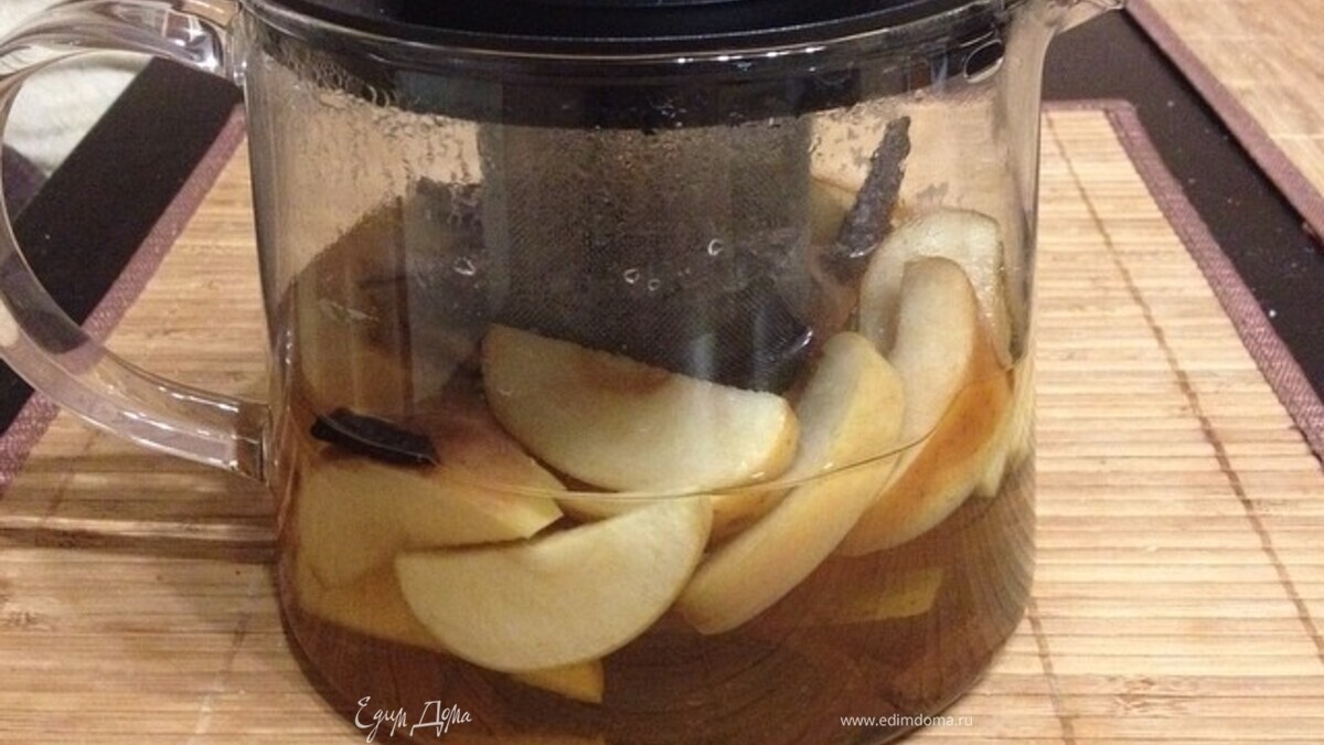 - Шаг 1Кипятим воду. В заварочный чайник кладем наши яблоки, 2 палочки корицы и насыпаем заварку. Заливаем кипятком, даем настояться минут 10. И вуаля... вкусный, ароматный чай готов!