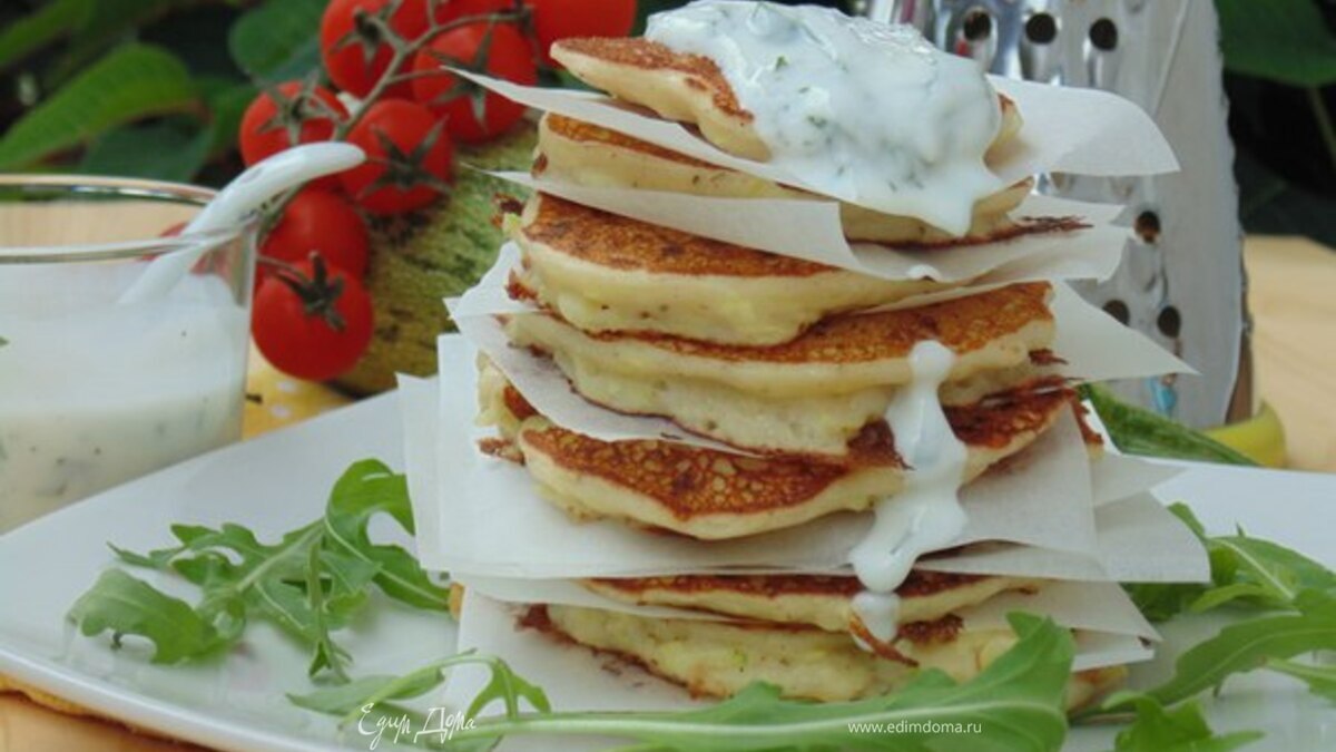 Кабачковые оладьи с козьим сыром и йогуртовым соусом