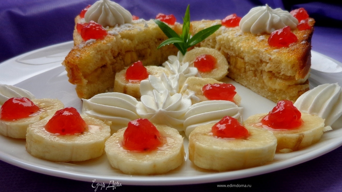 Но можно пойти дальше и проявить фантазию - украсить сэндвич взбитыми сливками и какими-нибудь ягодами. Я думала сделать это с клубникой, но пошел дождь и мне расхотелось идти на рынок. Поэтому украсила клубничным джемом. - Шаг 5
