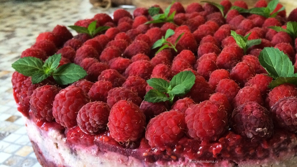 Малиновый веганский тарт на сыроедной "ириске"