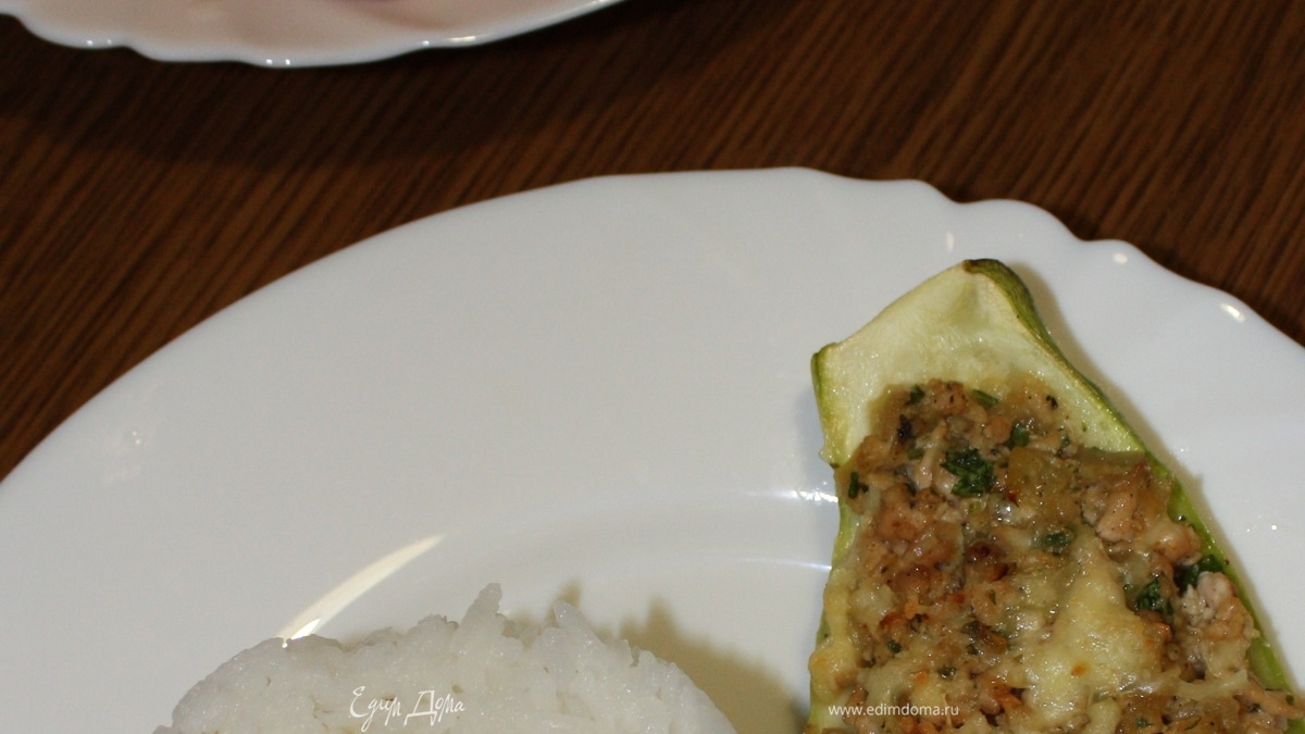 Смешиваем кабачки, лук, фарш. Пробуем, приправляем по вкусу. Я еще добавила петрушку. Укладываем начинку в лодочки. Посыпаем сыром. - Шаг 5