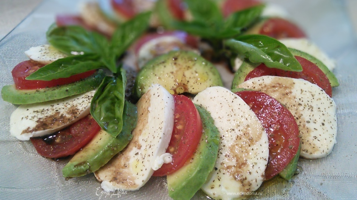 Салат «Капрезе» - это блюдо итальянской кухни, делается оно из помидоров, сыра моцарелла, базилика и бальзамического уксуса. Сам по себе сыр моцарелла родом из Италии и делается из молока буйволиц, но, конечно, у нас делают этот сыр из коровьего молока. "Плюс" в моём случае это авокадо! Благодаря нежному, едва уловимому ореховому вкусу авокадо является уникальным продуктом. Он носитель вкуса тех продуктов, которые с ним подают. Вы когда - то пробовали авокадо с солью, перцем, сбрызнутым лимонным соком? ![]()