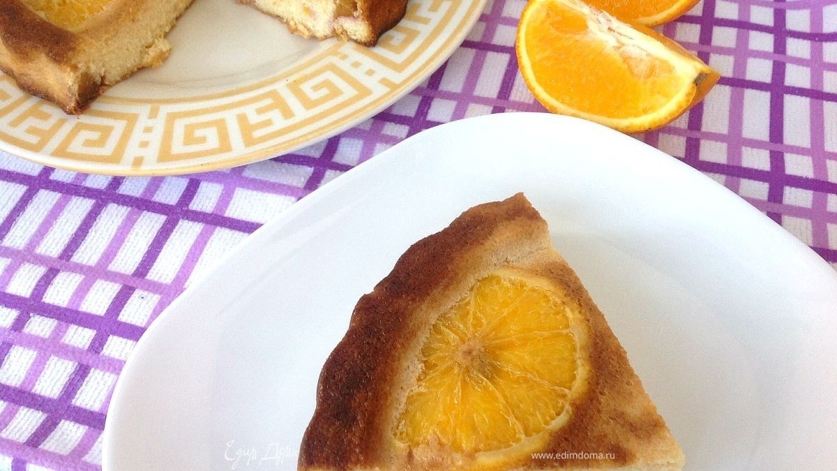 Выложите запеканку на блюдо перевернув, так чтобы апельсины оказались сверху.