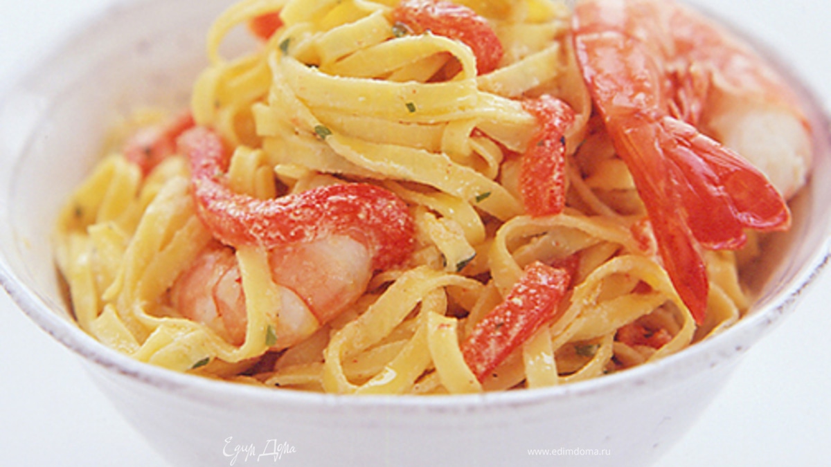 Паста с креветками и красным перцем