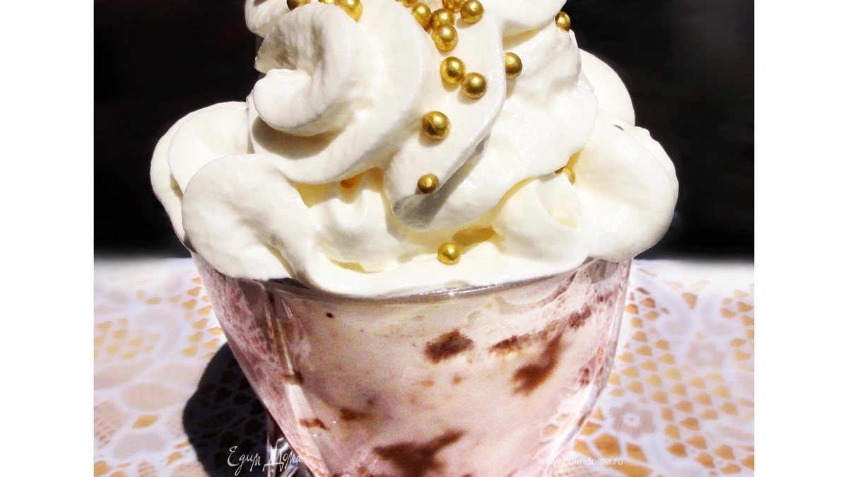 Украсить коктейль на свое усмотриние. В моем случае он украшен кондитерскими сливками, посыпан золотыми бусинками. Этот коктейль является не только вкусным, полезным и питательным. Он отлично утоляет жажду жажду, очень рекомендую попробовать!!!