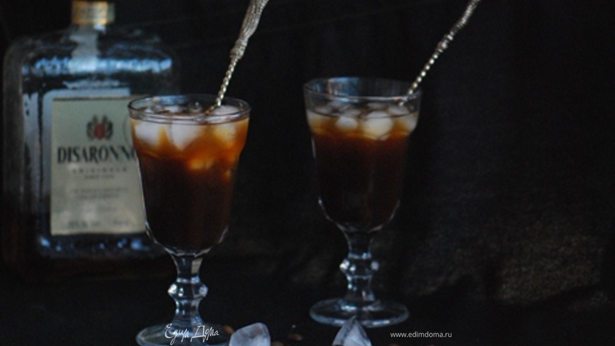 - Шаг 1В бокалы положить лед и налить амеретто.