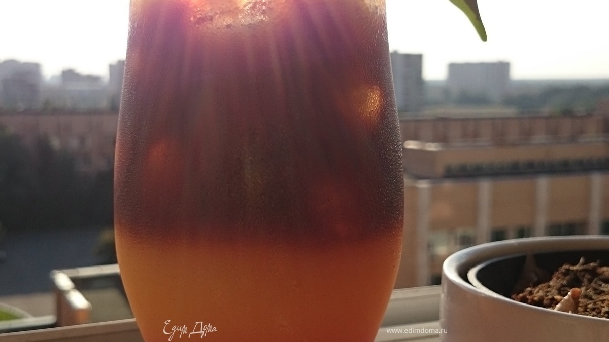 Так же по льду налить охлажденную смесь апельсинового и ананасового соков, должны получиться слои. - Шаг 4