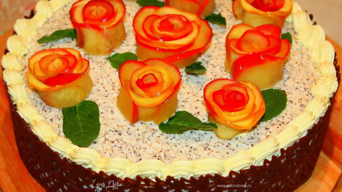 Украшаем торт карамельными розами и лепестками свежей мяты. Вуаля! Торт готов! Хороших всем праздников и прекрасного настроения!