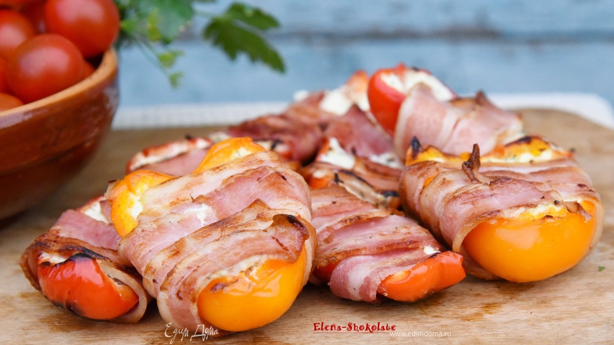 Перцы со сливочным сыром в беконе