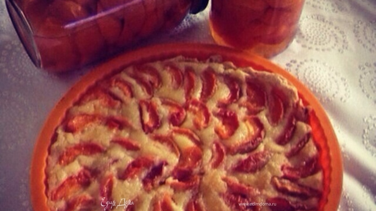 Абрикосы порезать на четверти и выложить в крем. Выпекать еще 25 минут. - Шаг 8