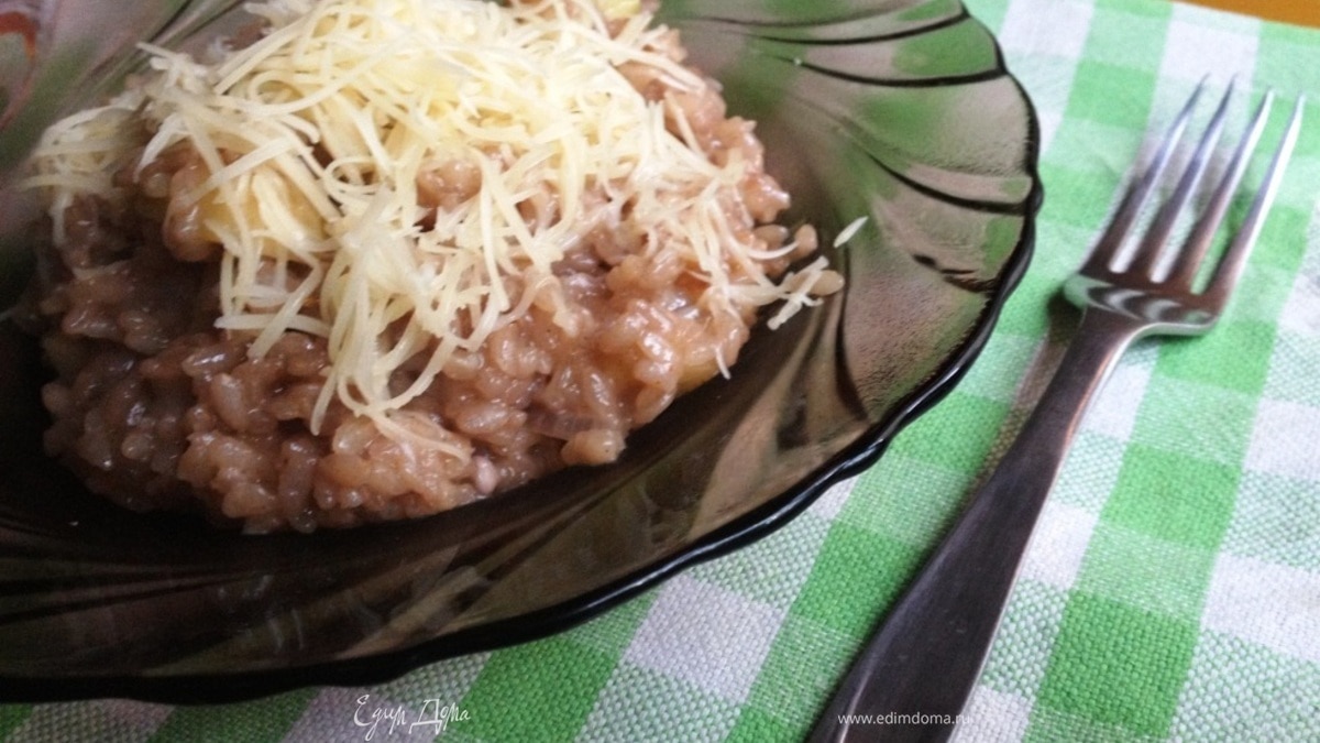 Рецепт этого ризотто разместила Вика-passion1963 на Кулинаре ещё в 2010 году. Спасибо ей за рецепт! Очень вкусный, пикантный и нехлопотный ужин. Для его приготовления лучше использовать белое сухое вино. Но у меня оно закончилось и пришлось воспользоваться красным. Соли написала 1 ч л, но смотрите по своему вкусу.