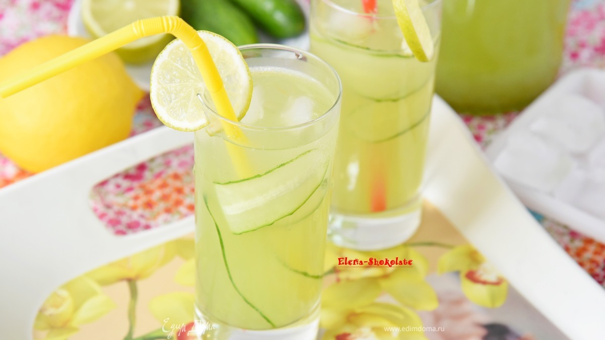 В бокалы разложить огуречные слайсы, лёд, разлить лимонад. Украсить бокал дольками лайма. Свежий лимонад с лёгкой кислинкой идеально утоляет жажду!