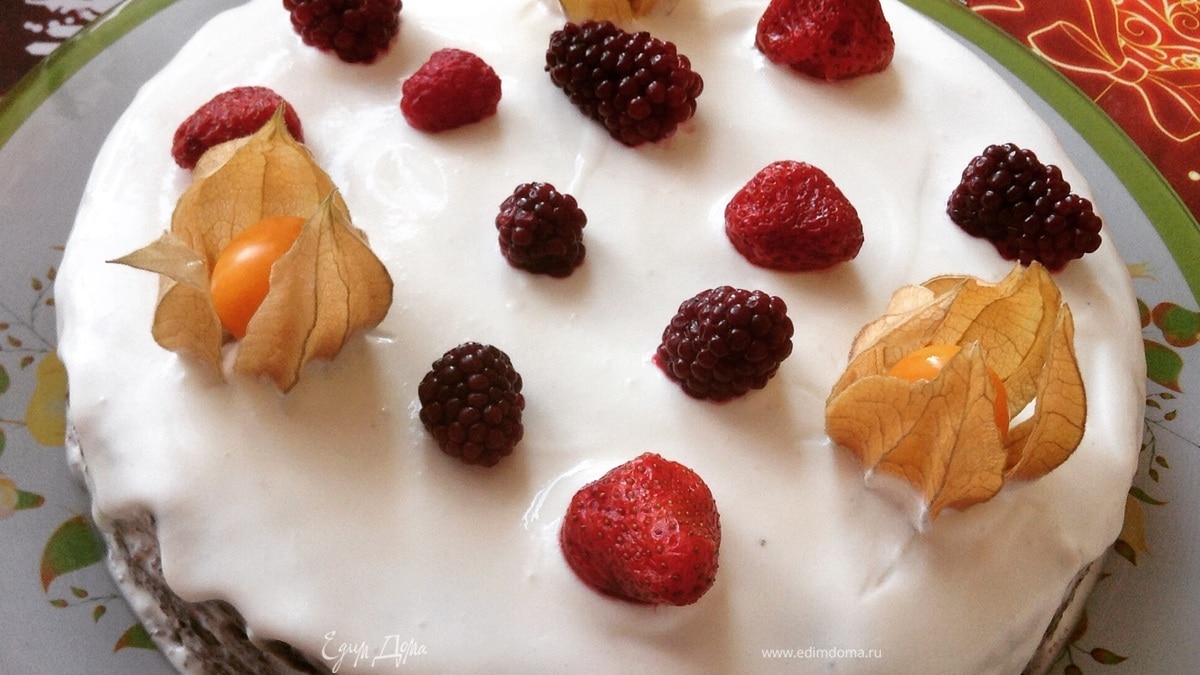 - Шаг 2Внести черемуховую массу в тесто и хорошо размешать. Выпекать 40-50 минут при 170 градусах, после выключения оставить в духовке на 30 минут. Затем полученный бисквит разрезать на два коржа и смазать сметанным кремом.