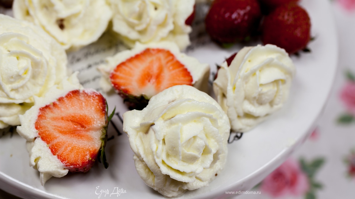 Можно покрыть всю ягоду кремом, а можно только половину.