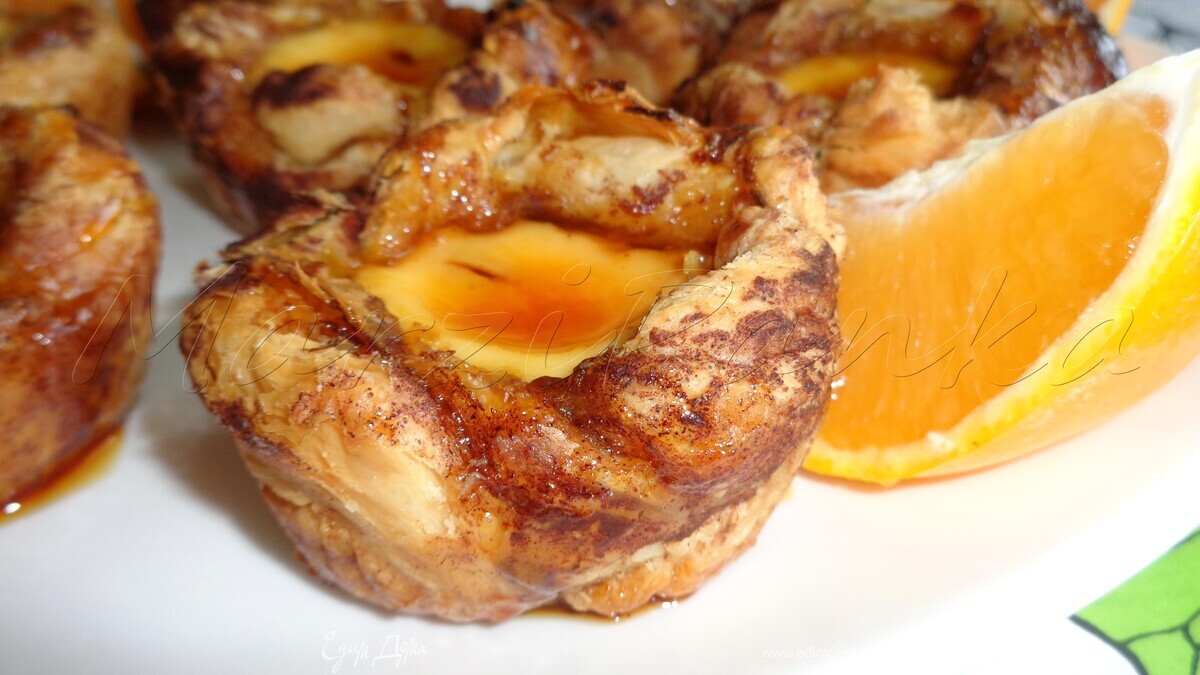 Нежнейшие пирожные с кремовой ванильной начинкой и апельсиновой карамелью.