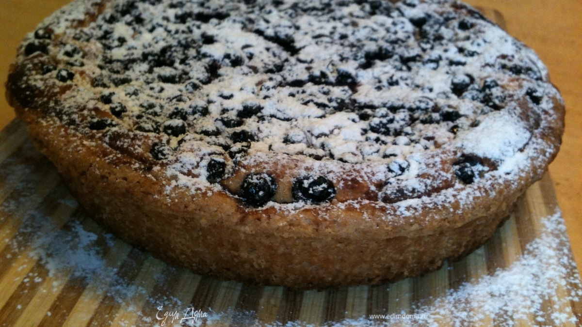 Летний песочно-творожный пирог с вареной сгущенкой и черникой