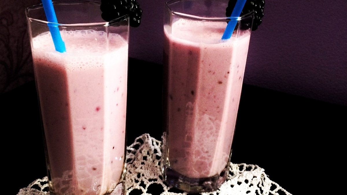Семечки ванили, молоко и йогурт добавляем к ежевике, взбиваем миксером или блендером. - Шаг 4Переливаем в стаканы, украшаем!