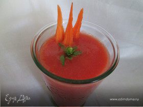 Очень полезный, вкусный и витаминный коктейль. Прекрасно освежает летои, придает энергию, силу и здоровье. Быстро готовится на большую компанию. Все продукты должны быть охлажденными.